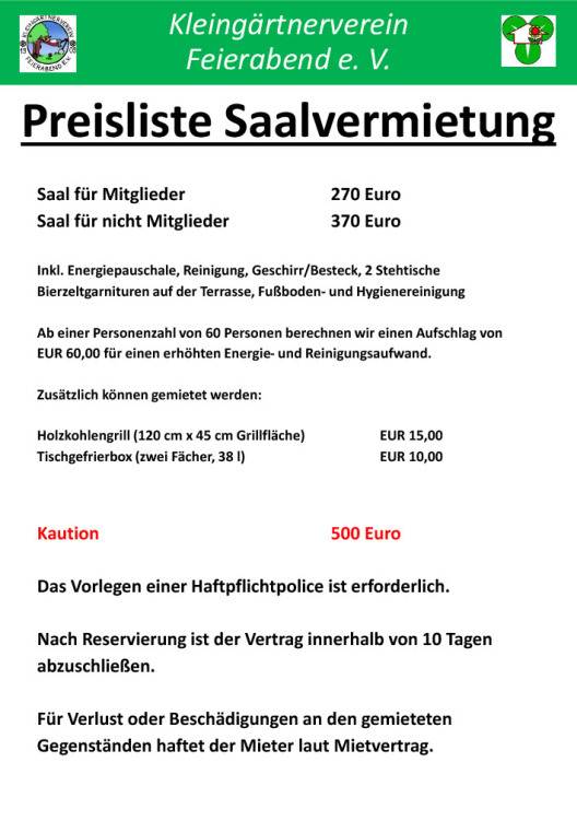 Dieser kann für Feierlichkeiten ab einem Alter von 21 Jahren über den Vorstand angemietet werden.